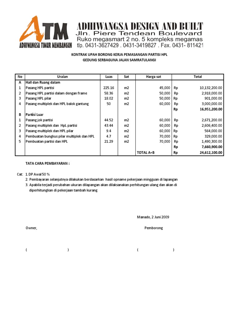 18 Harga Borong Kerja